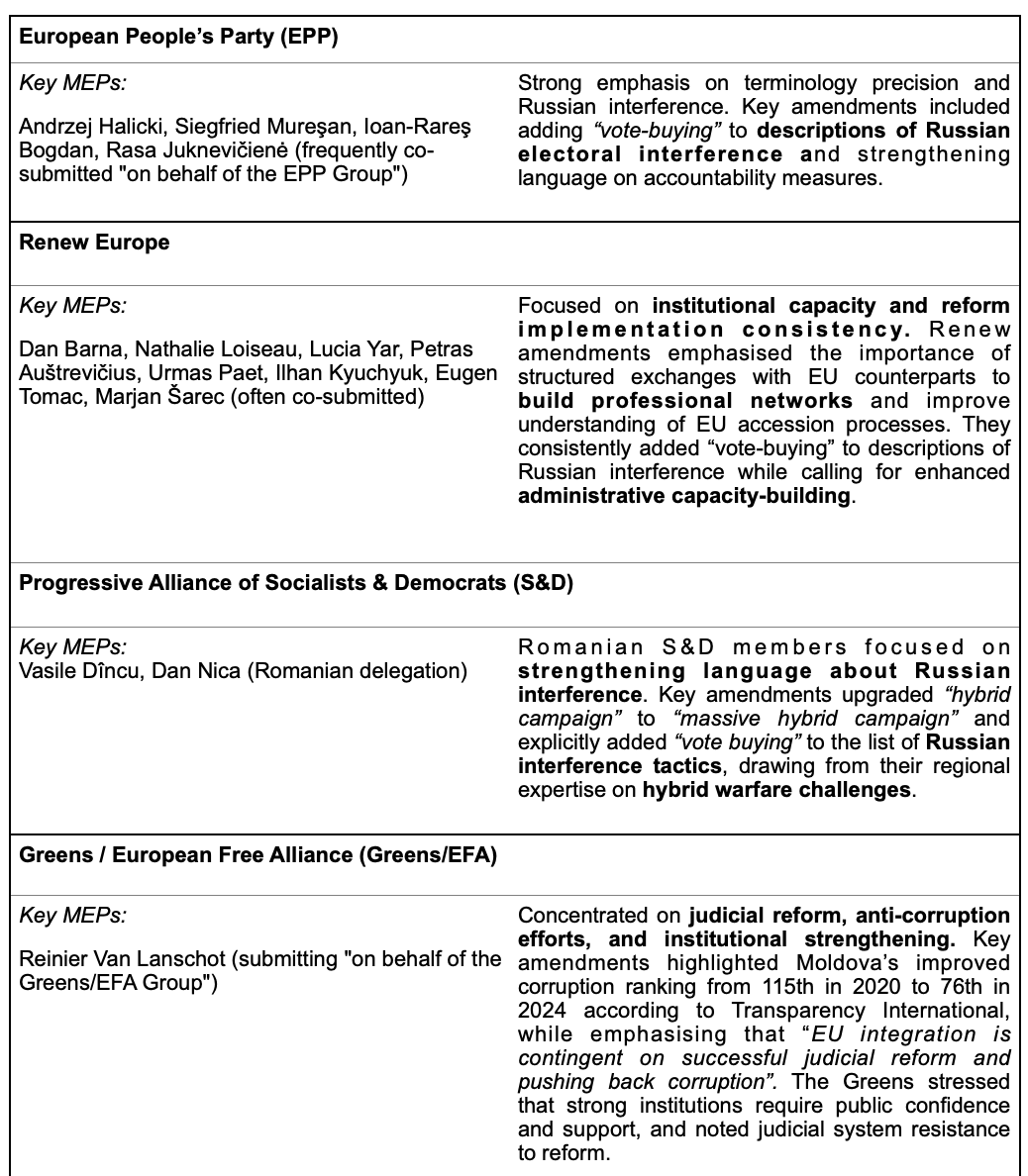 The final text incorporated key amendments from across the political groups, resulting in a document that strengthened language about Russian interference and acknowledged Moldova’s progress, particularly its improved governance indicators and corruption ranking from Transparency International. However, it also underscored the difficulties in reforming Moldova’s judiciary and its vulnerability to manipulation.